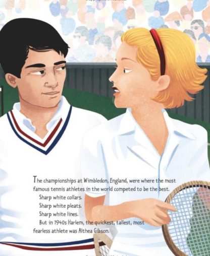Althea Gibson was the quickest, tallest, most fearless athlete in 1940s Harlem. She couldn’t sit still! When she put her mind to it, the fleet-of-foot girl reigned supreme at every sport-stickball with the boys, basketball with the girls, paddle tennis with anyone who would hit with her. But being the quickest, tallest, most fearless player in Harlem wasn’t enough for Althea.