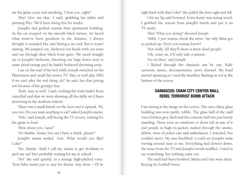 This debut middle-grade novel chronicles the harrowing journey taken by Sami and his family from privilege to poverty, across countries and continents, from a comfortable life in Damascus, via a smuggler’s den in Turkey, to a prison in Manchester. A story of survival, of family, of bravery … In a world where we are told to see refugees as the ‘other’, this story will remind readers that ‘they’ are also ‘us’.