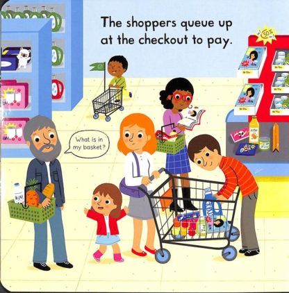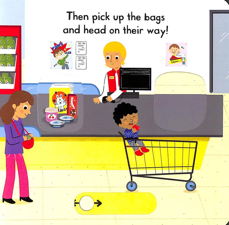 Pop to the shops with Busy Shopping! Young children will have fun pulling and turning the tabs as they read the rhyming story. Fill the trolley to the top, whizz down the aisles, then pay at the checkout – and keep a lookout for the missing teddy bear! Perfect for toddlers who like to play as they read, they will love this bright and colourful reissued board book with wonderful illustrations by Melanie Combes. Discover more adventures in the Busy Book series with Busy Hairdresser, Busy Bookshop, and Busy Cafe.