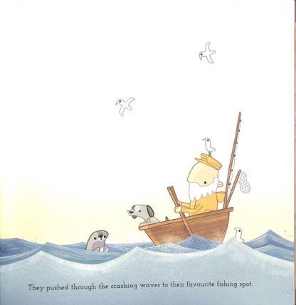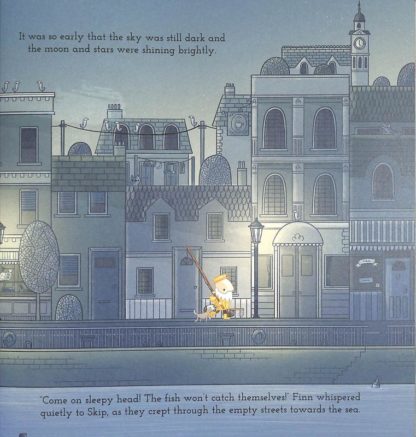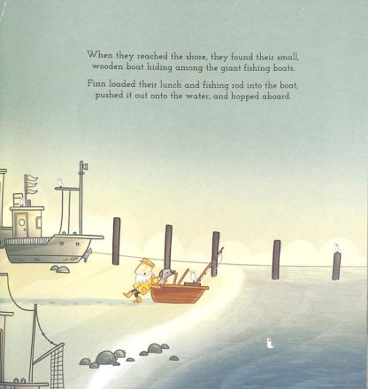 The longer he spends out on the ocean, the more crazy objects he collects! Finn and his dog Skip go home each day with a full boat, but empty tummies. It isn’t long before Finn finds a way to reuse and recycle everything he has collected. Pretty soon he makes enough money to make a tasty dinner every day, and under his care the ocean becomes clean, bright, and full of fish again!