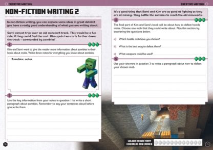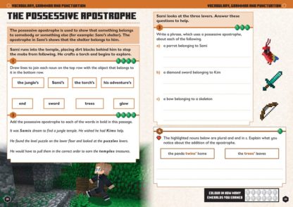 The only official Minecraft English book for children aged 7-8! Children embark on a Minecraft adventure in each English topic, using their skills and knowledge to complete the tasks and earn rewards. This is a write-in English practice workbook which uses the Minecraft game as a mechanism for practising the key English skills covered in Year 3. Accomplish English activities to help Minecraft characters on their missionsExplore different biomes in each topicEarn emeralds as you work through the book, and choose how you spend themGo hardcore with challenging questions