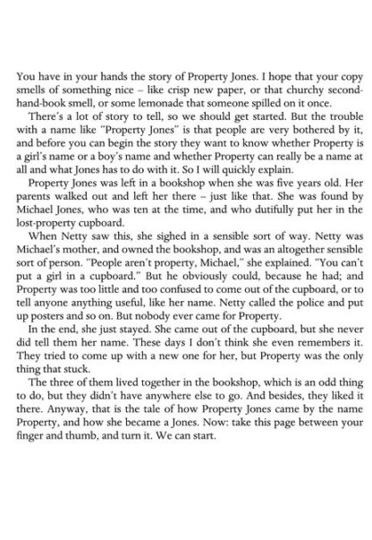 This story is about a little girl named Property Jones, so-called because she was left in the lost property cupboard of a bookshop when she was five years old.