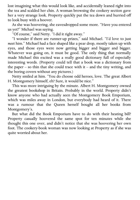 So Property doesn’t see the newspaper article announcing the chance to win the Montgomery Book Emporium, the biggest and most magnificent bookshop in the world! When her family win the competition, Property finds herself moving to the Emporium, a magical place filled with floor upon floor of books and a very bad-tempered cat.