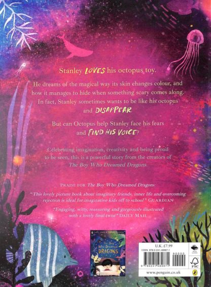 A magical tale of finding your voice and becoming yourself. Stanley loves his octopus toy, and dreams of the magical way its skin changes colour; how it hides itself when something scary comes along. In fact, sometimes Stanley wants to be like his octopus and disappear.