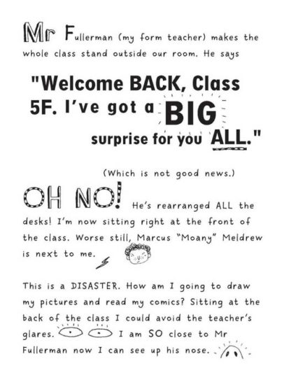 Tom Gates is the master of excuses for late homework: dog attacks & spilt water & lightning…