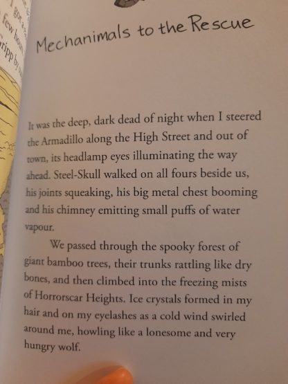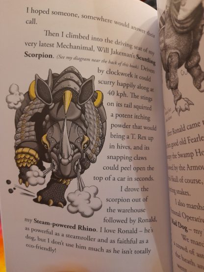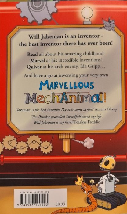 Will Jakeman is an extraordinary inventor, perhaps the best there has ever been! People come from far and wide to buy his ‘Mechanimals’ – incredible machines that come to life and perform all sorts of amazing tasks. For example, Steel-Skull the gorilla, perfect for dealing with bullies, and The Armoured Armadillo, a magnificent machine that can barge through most obstacles and is even armed with a gunge gun … Learn all about Will Jakeman’s childhood, the terrible fate of his parents, and discover whether the evil Ida Gripp ever gets her hands on his marvellous mechanimals …